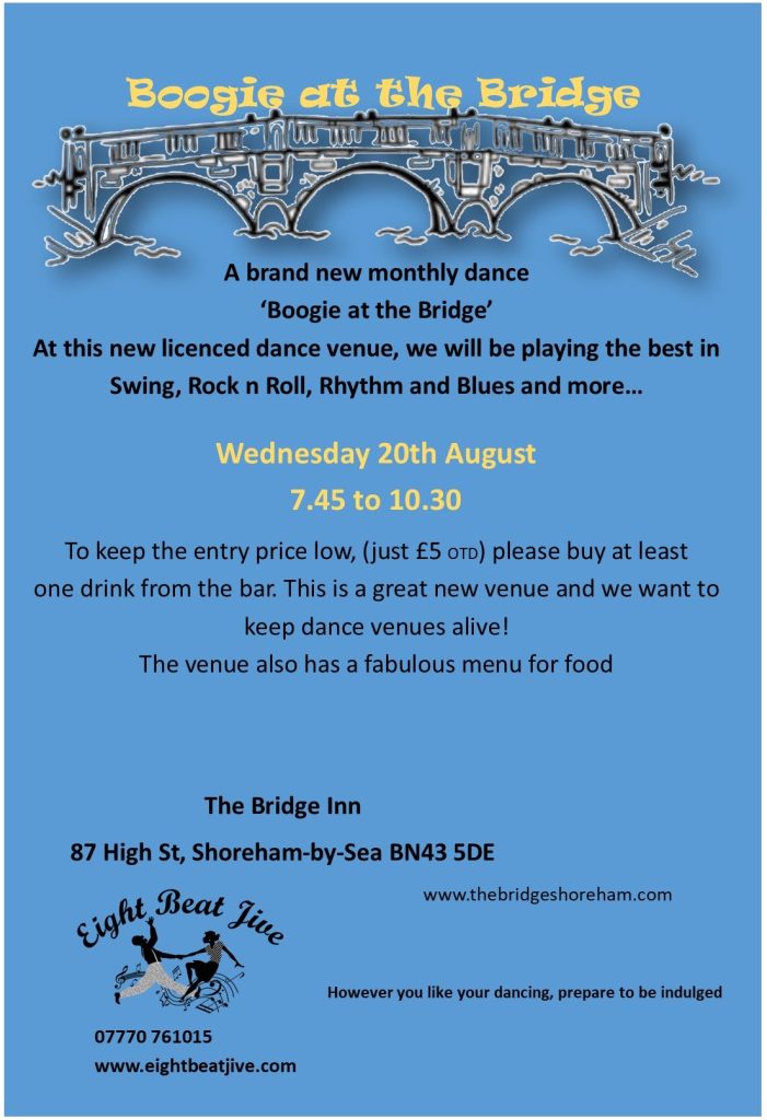 *** The next Boogie at the Bridge is Wednesday 20th August *** Contact us on 07770 761015 or email dave@eightbeatjive.com